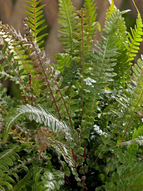 The native lady fern with lovely fine textured foliage. It was called the lady fern because it was the pretty, slender fern, as against the "rougher" male ferns. Tends to like a slightly more damp position than the male ferns. Deciduous.