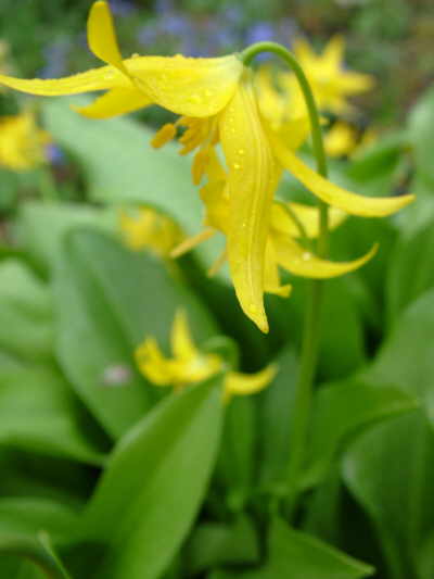 A shorter more compact and more floriferous form of E. toulumnense. By far the best form of Erythronium with bright yellow flowers.